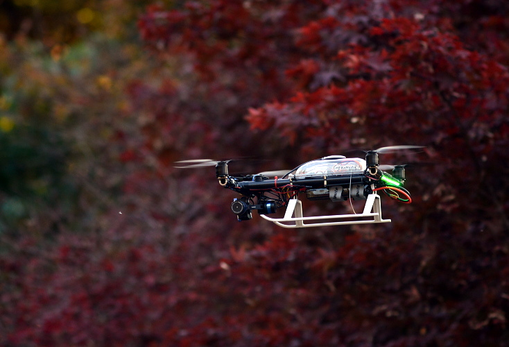 マルチコプターとは4枚羽根、6枚羽根のヘリコプターのような物なのですが、ヘリコプターより非常に安定性がよく、前にも後ろにも横にも進めるという代物です。そのマルチコプターにカメラやビデオカメラを積んで撮影したり、人が入れない場所に行って何かをしたりと、用途は広がっているようです。