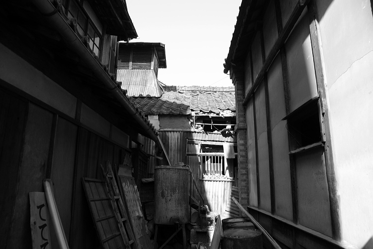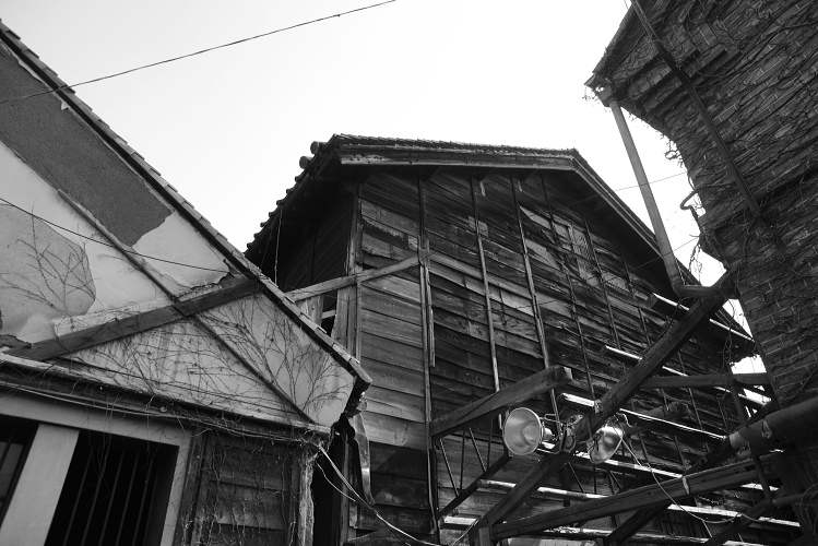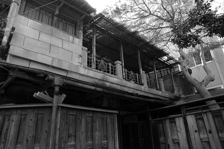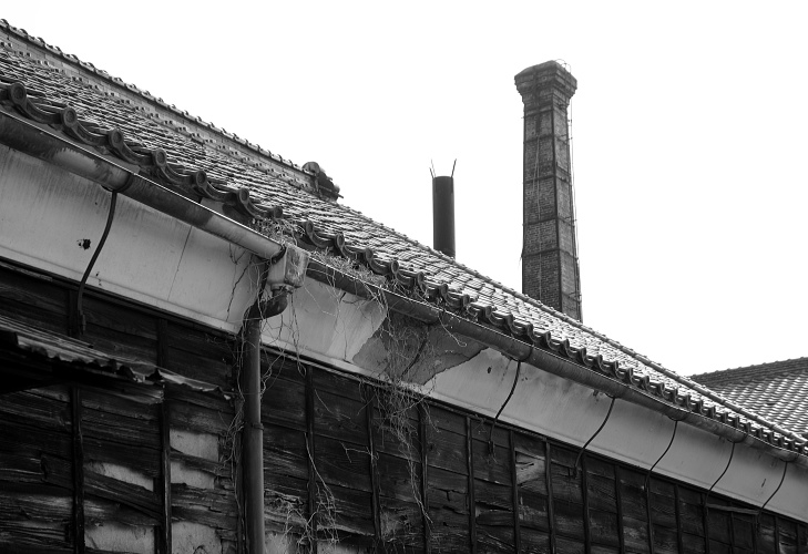 埼玉県深谷市の旧七ッ梅酒造の建物です。この建物は多くの映画やテレビドラマで使用されています。 かなり廃屋化した部分が多く、特にそんな所を写して、モノクロにしてみました。