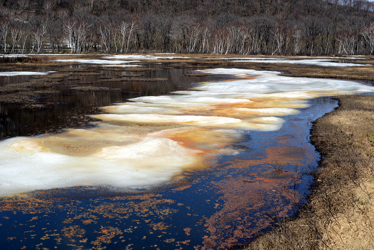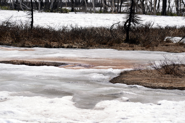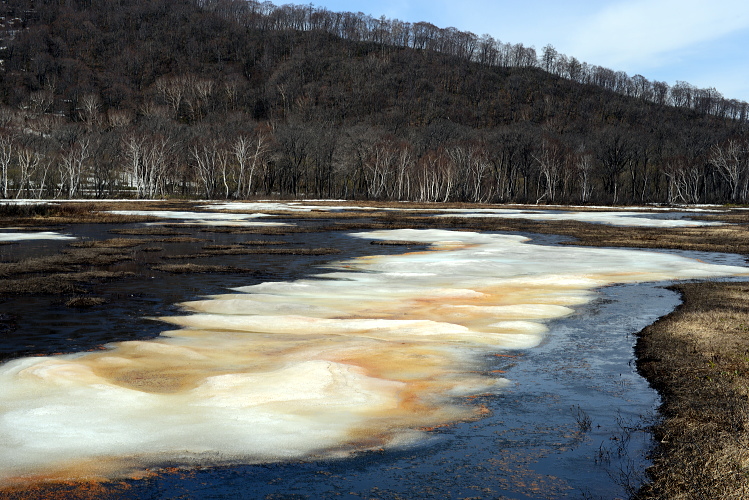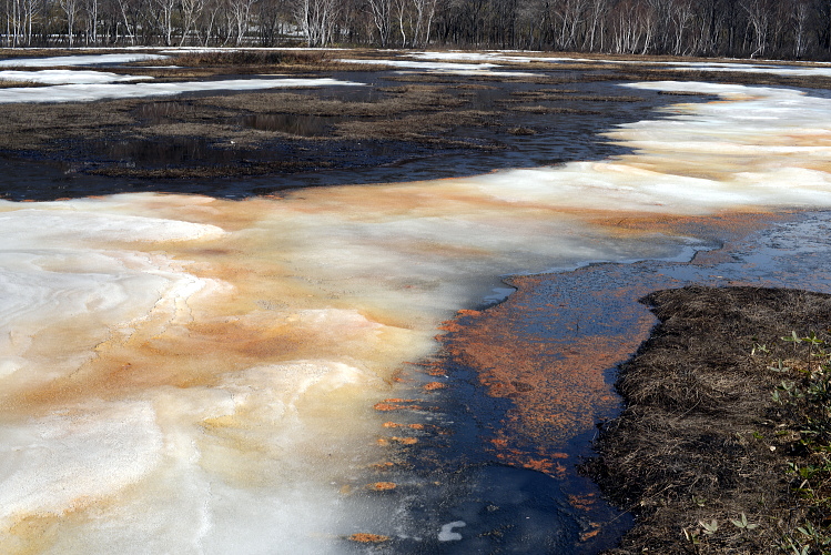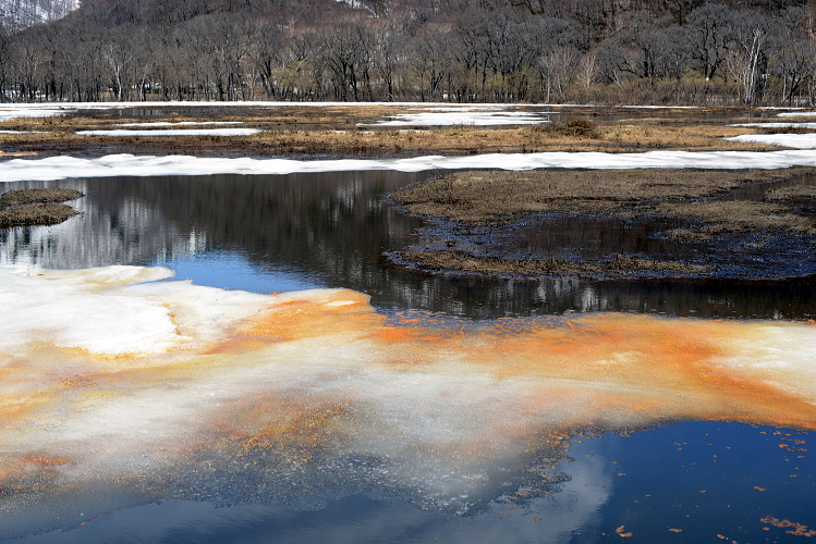 尾瀬ヶ原の雪解けの頃に現れる「アカシボ」という現象。融けた雪が赤く変色する現象です。その色の原因は鉄分の酸化によるものなのですが、それを酸化させるものが太古の微生物「ジオバクター」と言うバクテリアなのだそうです。どうやらそれ一種類ではないようなのですが、それらは酸素の代わりに鉄を栄養源とし、まだ地球上に酸素が無かった時代から生きていたそうです。壮大なロマンがアカシボには隠されていたのですね。そうやってみると何だか荘厳な色、現象に見えてきました。