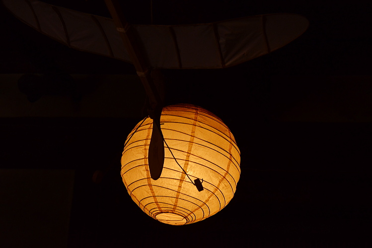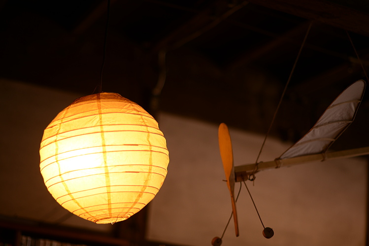 柔らかな和紙の明かりとプラモデルの飛行機がちょっとアートしていました。