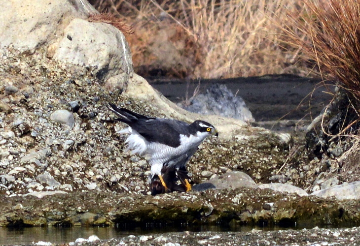 ここは内陸部なのですが、イソヒヨドリは川をさかのぼって時々こんな所にも来るようです。