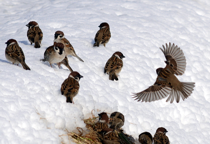雪の日。スズメも餌を探すのに苦労しているようでした。