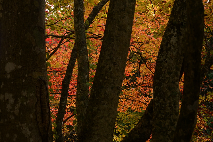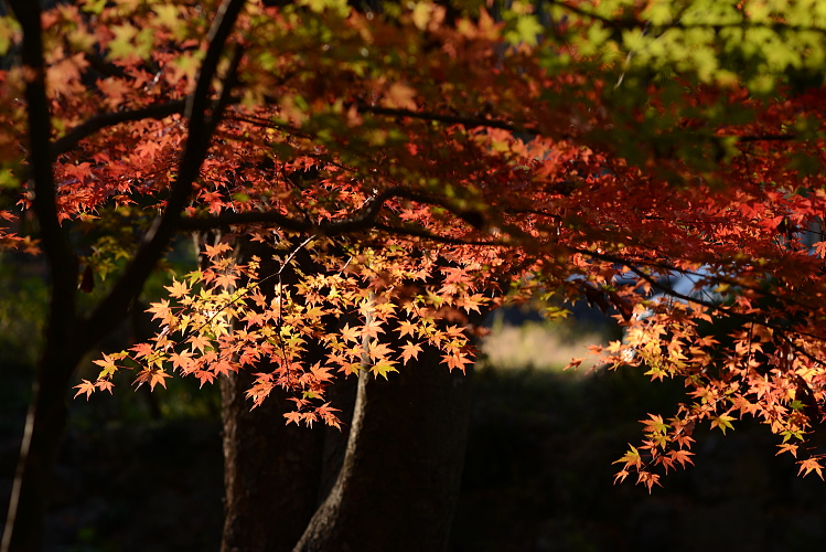近場の紅葉なのですが、光に輝く紅葉の色と陰の暗い部分とのコントラストが面白いものを集めてみました。