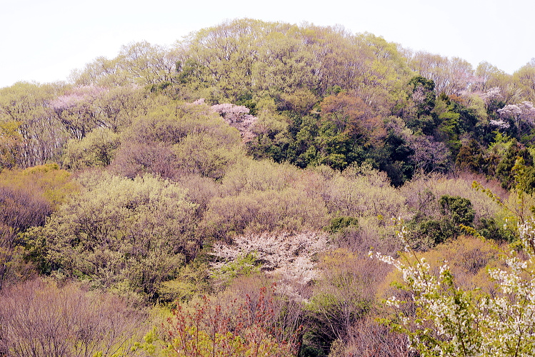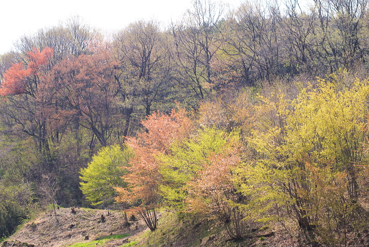 芽吹きの頃の山の色は柔らかい色が複雑に重なって綺麗ですね。それに何だかほっこりします。