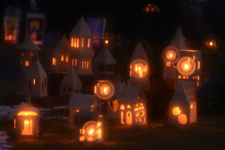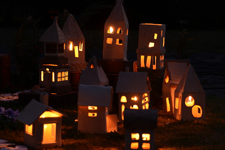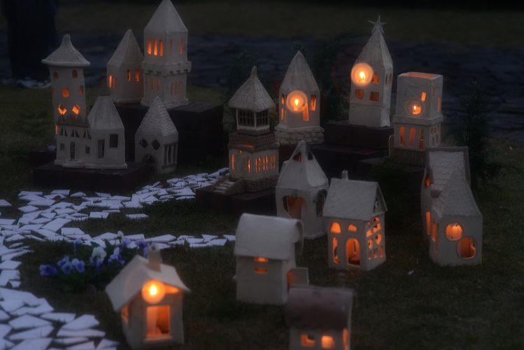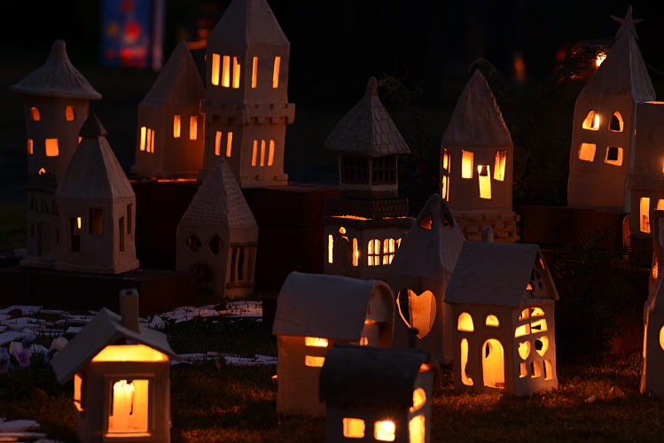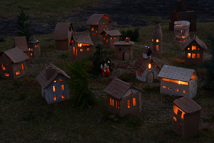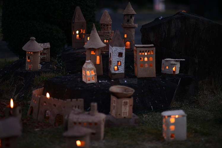 夜のこんなイベントがおこなわれていました。 素焼きの町の光のオブジェ。