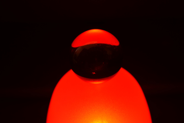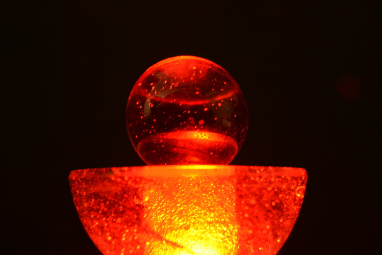 ビー玉にもう一つガラス製品を加えたら人形に見えてきた。