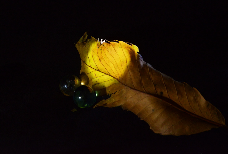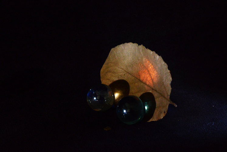 ガラス瓶とビー玉に光を当てると綺麗でした。