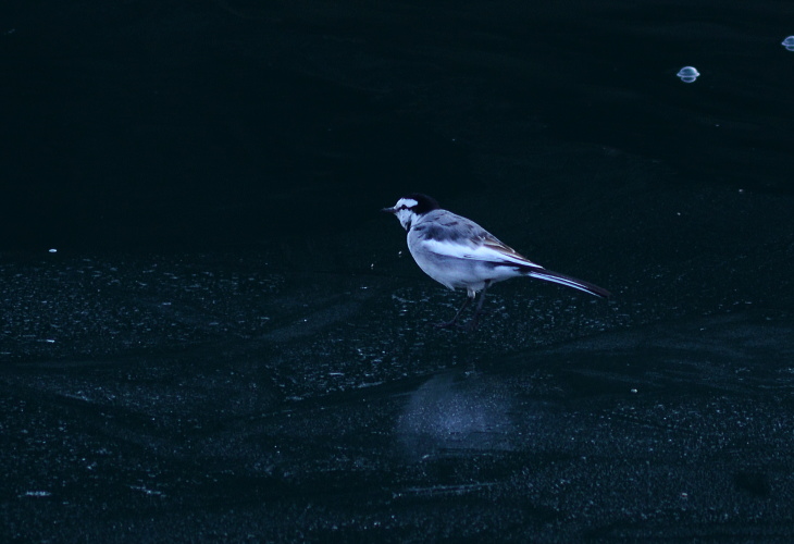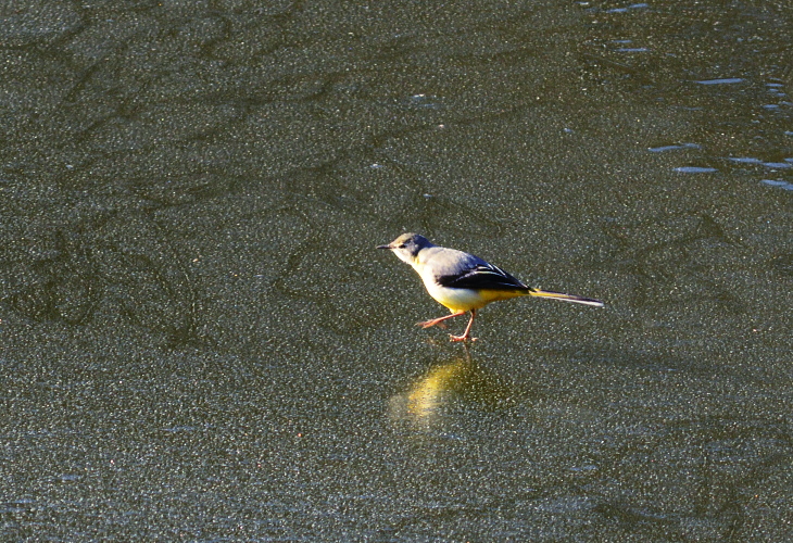 凍った池の上をセキレイが歩いています。セキレイはよく氷の上を歩きますね。 ハクセキレイ キセキレイ