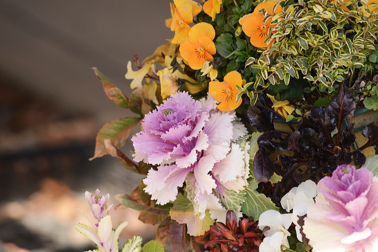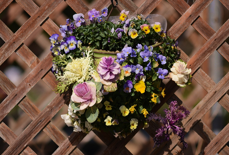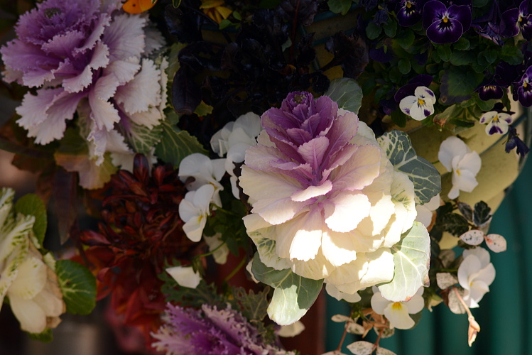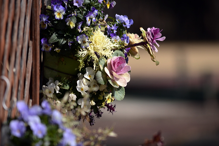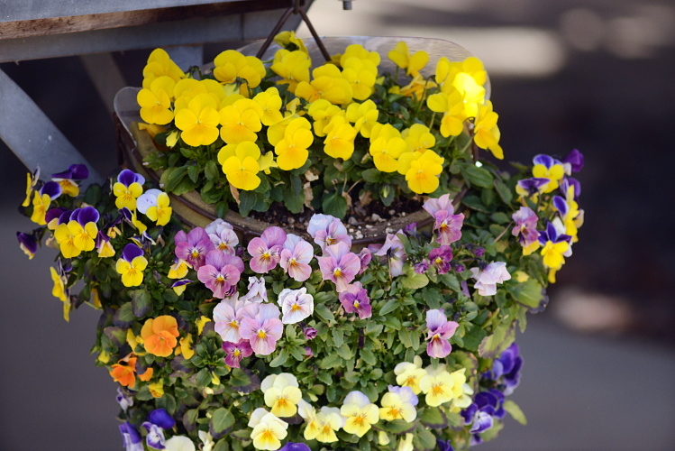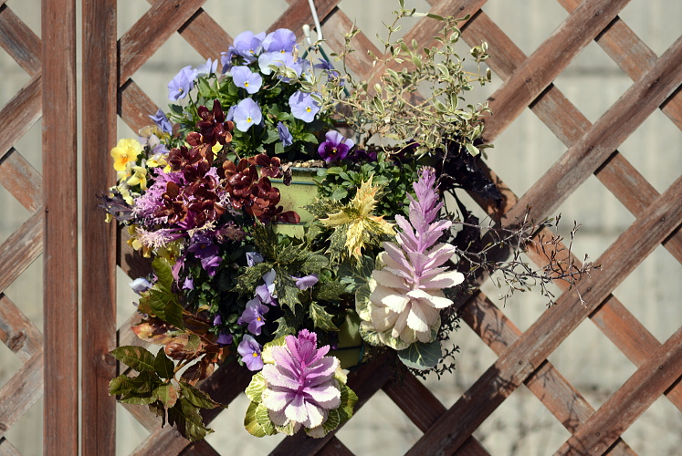 近くのガーデニング店にある花を写させていただきました。2月の末です。 ハンギングバスケット