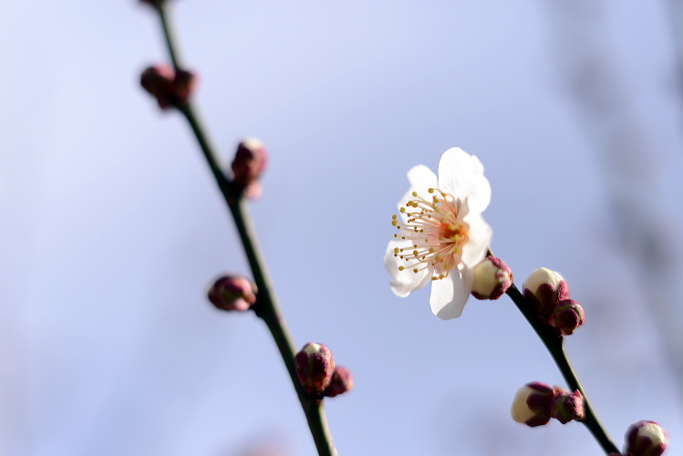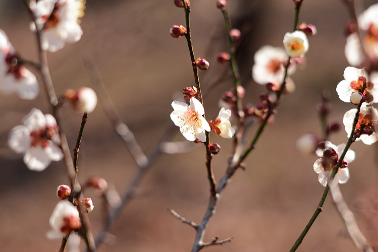 野の花とは言えませんが。 梅の花も色々ありますが、梅の実を採るための白い一重の花が好きです。今回はそんな梅の花です。