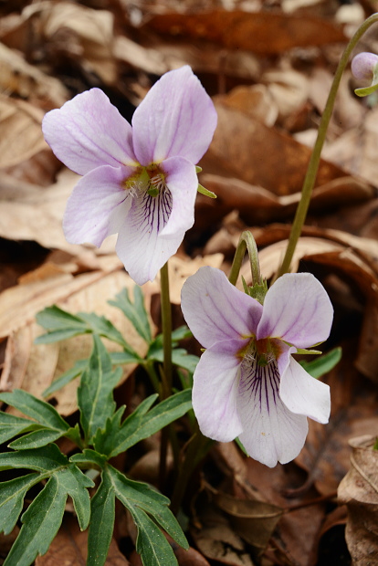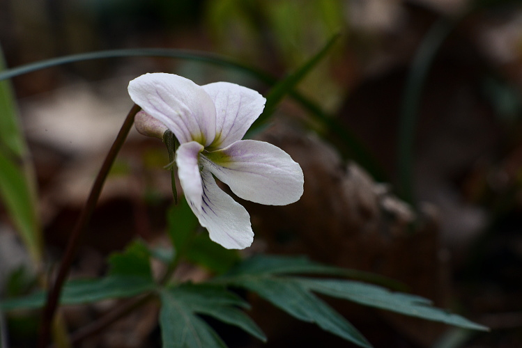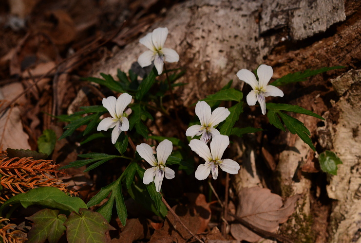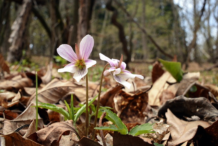 エイザンスミレは葉が割れているのが特徴です。花も大きく結構目立ちます。花色はピンクから白まで色々です。