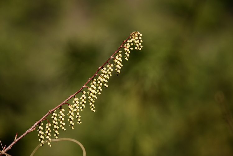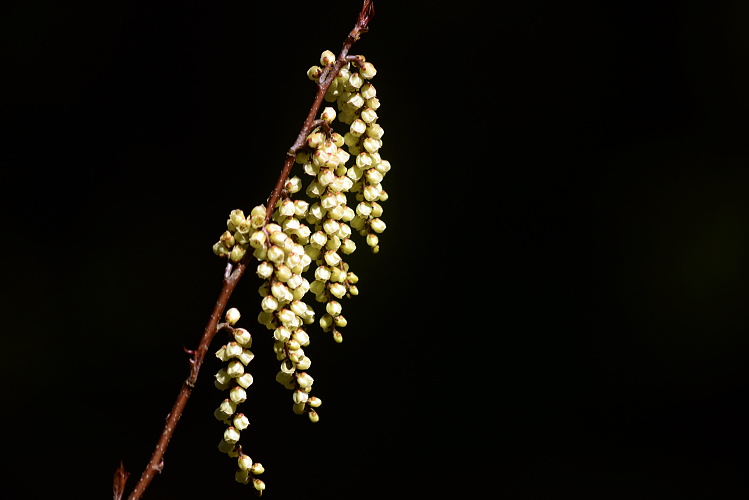 キブシはクリーム色の小さな花を沢山ぶら下げて咲きます。まだ冬枯れの山ではそれがよく目立ちます。