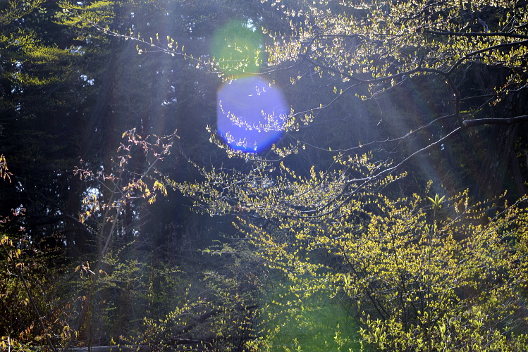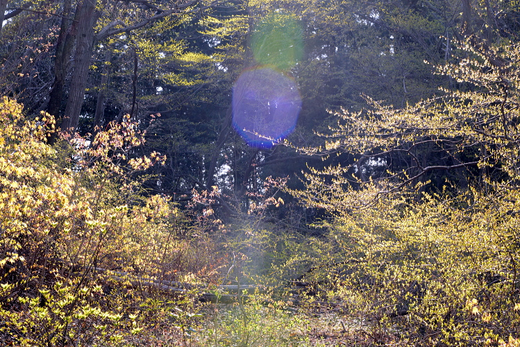 山の木の芽吹きに春の陽光が彩りを添えてくれました。