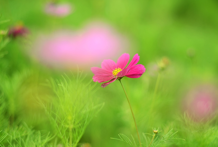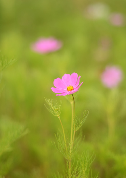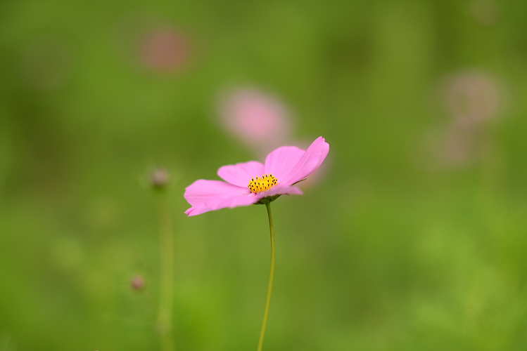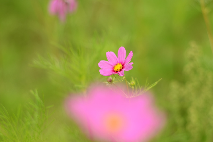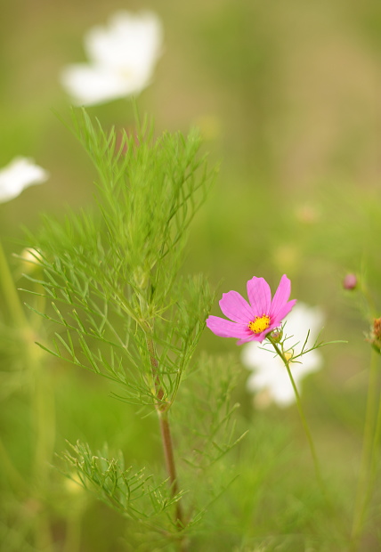 この写真は6月に撮ったものです。コスモスが6月?気が早いですね。どうやら昨年落ちた種から出たようです。