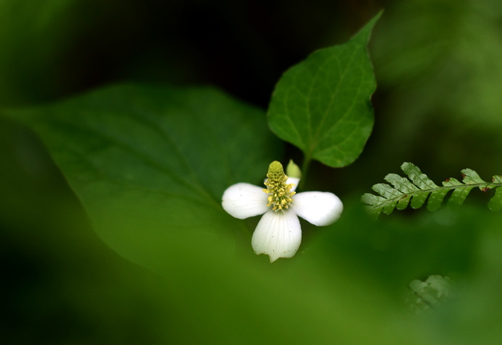 ドクダミは半日陰の場所によく群生していますが、それほど群生せず、緑の中にポツポツと白い花を咲かせているとなかなか風情がありますね。匂いは勘弁してもらいたいですが。
