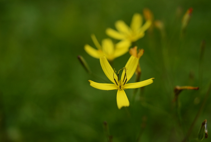 ニガナは写真に撮るのが難しい花の一つです。花があちこちと散漫に咲くのでとらえどころがはっきりしません。しょうがないのでアップで撮るのです。
