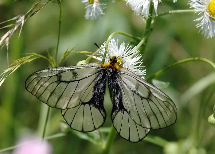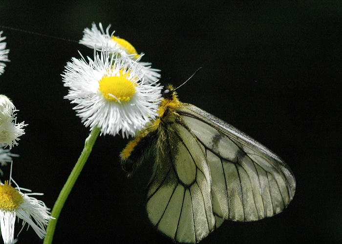 ウスバシロチョウは見た目モンシロチョウの仲間のようですが、 実はアゲハチョウの仲間です。 体が毛深いのでそうかなと思えます。