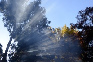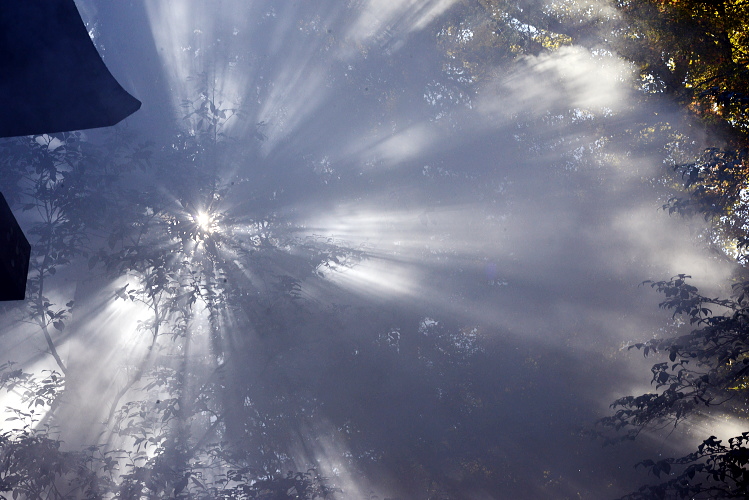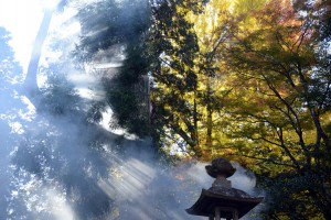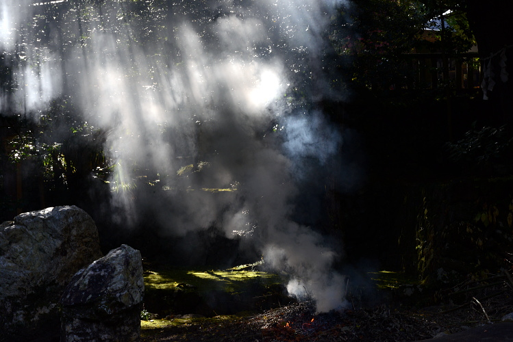 金鑚神社(かなさなじんじゃ)は埼玉県の児玉郡神川町にあります。武蔵国二ノ宮とも言われる古い神社です。ご神体が背後の山である事でもその古さが判ります。 この日金鑚神社では2か所ほどで落葉焚きがおこなわれていました。その焚火の煙に日が射し、丁度光芒のような現象があちこちに起こっていました。