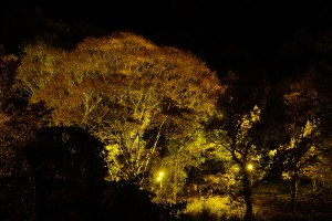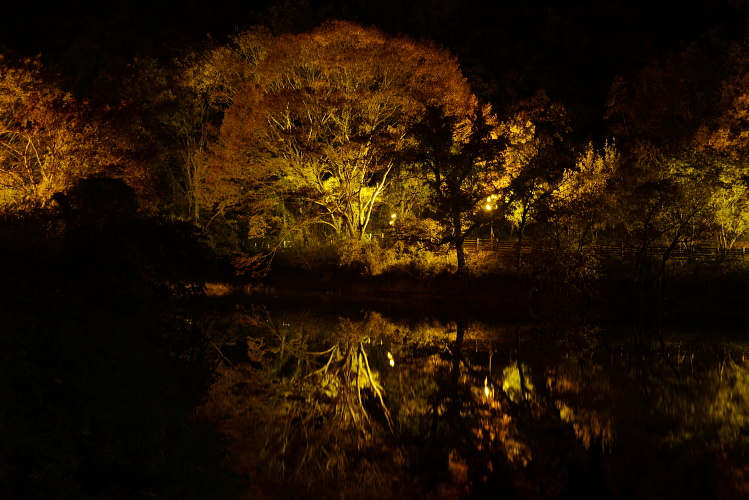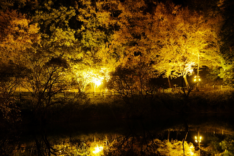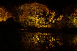 赤い葉の木はありませんがそれなりに面白いライトアップでした。