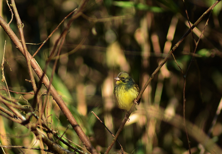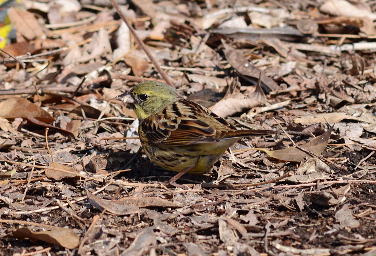 下界では冬の鳥アオジ。高い山で繁殖します。