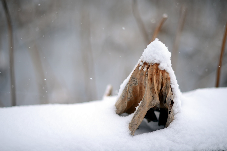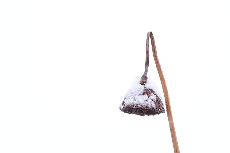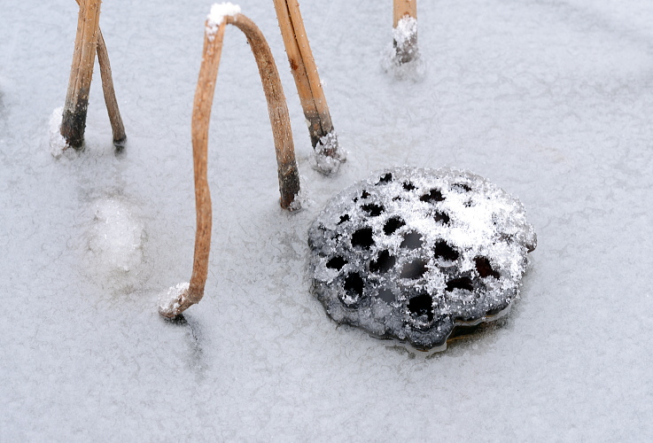冬のハスは勿論昨年の残骸。それは綺麗なものではないが雪が積もると別物です。