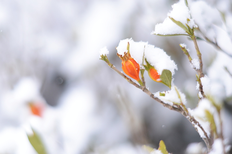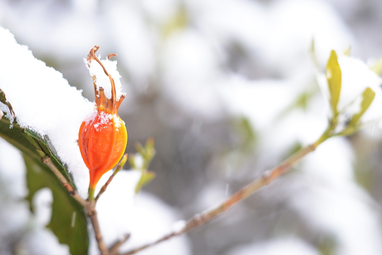 クチナシの実は鮮やかなオレンジ色。雪の白さとのコントラストが素敵でした。