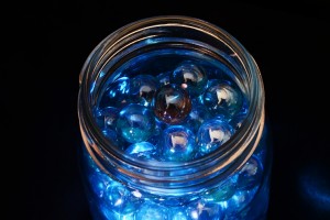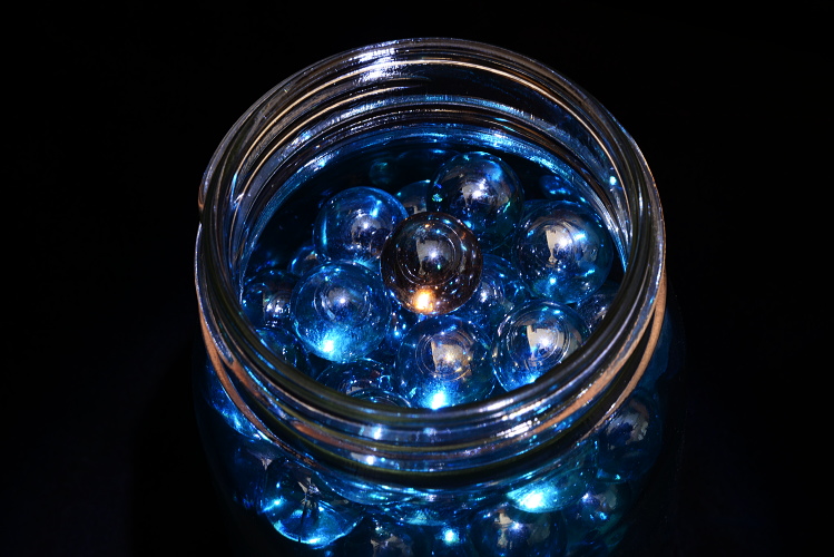 ガラス瓶とビー玉に光を当てると綺麗でした。