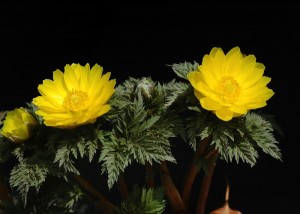 このフクジュソウは野生のものではありません。 路地植えの植栽物です。あしからず。 温かそうな虫たちの食卓、テラスですね。