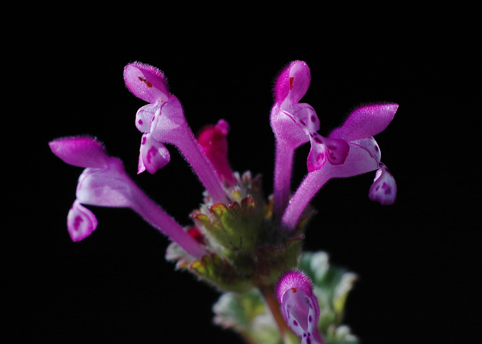 まだ冬の寒い時期から陽だまりではホトケノザが花を咲かせています。 アップにするとより可愛い表情をしています。