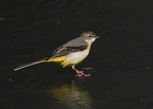 氷の上をおっかなびっくり歩くキセキレイ。 素足で、冷たくないんですかね。