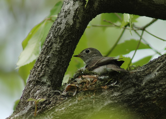 運よくコサメビタキの巣を見つけました。 しかし、親が離れてしまうとどこに巣があるのかわからなくなってしまいそうでした。