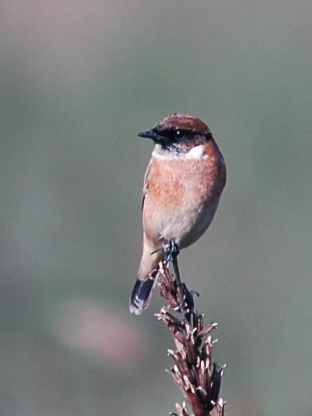 渡りの途中のノビタキ。 頭が真っ黒ではありませんが、なかなか凛々しい雄です。