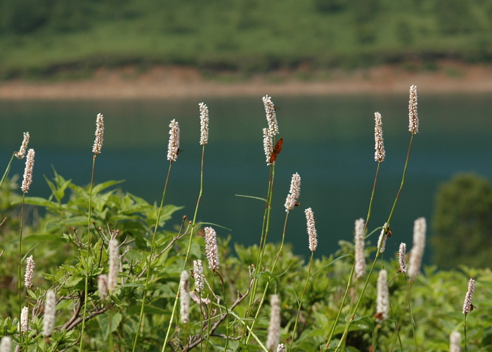 野反湖をバックにイブキトラノオのお花畑。 「私も私も」と手を上げているようでした。