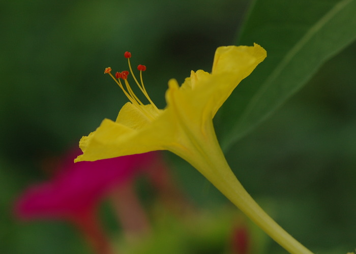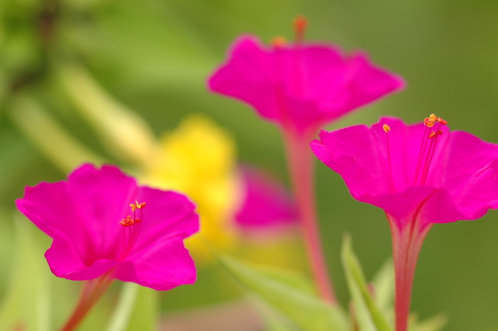 オシロイバナはほとんど野生状態ですが、全くの原生林の中などには咲きません。 やはり人間に依存しているようです。 それにしても鮮やかなピンクと黄色です。