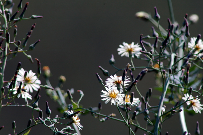 冬の大きなロゼットの葉から地道に栄養を蓄え、秋に沢山の花を咲かせるアキノノゲシ。 バックの処理を上手くすると面白い絵に撮れます。