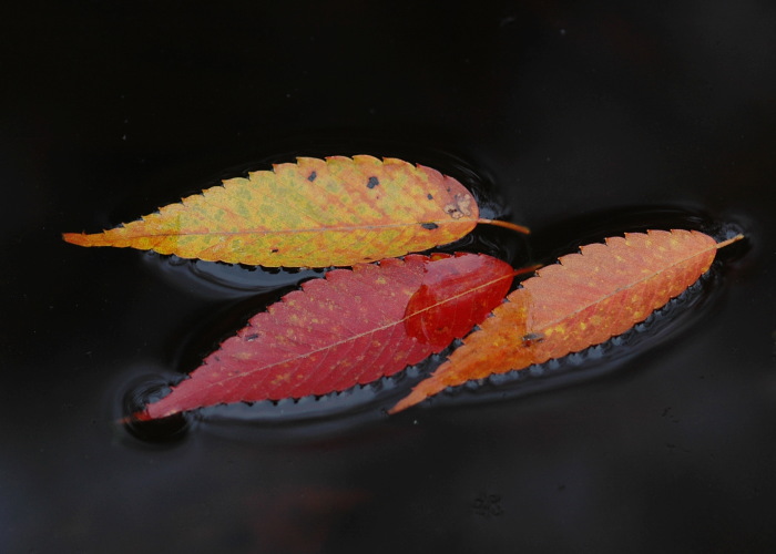 今年最後の「野の花」??は落葉です。 水に浮かぶケヤキの落葉が並んでしました。