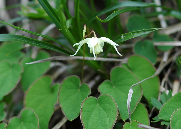 クモイイカリソウは谷川岳や至仏山の蛇紋岩地に生える特殊なイカリソウです。 キバナイカリソウに似ていますが、キバナイカリソウほど背丈は高くありません。 葉の縁が赤褐色に縁取られるものが多いようです。この写真のものもそうですね。 どうやらイカリソウとキバナイカリソウの中間型ではないかといわれているようですが、真実のほどは・・・・。