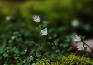 ハナネコノメは山の水辺の苔の生えているような所でよく見かけます。でも小さいので見過ごすことが多いようです。発見した時の悦びはかなりのものがあります。まるで天使のようですから。