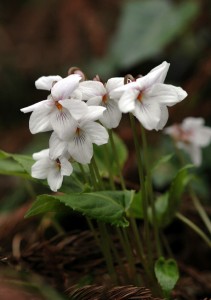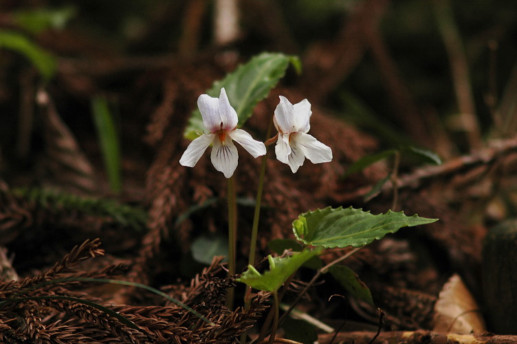 スミレサイシンは日本海側。このナガバノスミレサイシンは太平洋側に咲きます。殆んど白く、大きな花を咲かせます。それほどポピュラーなスミレではありません。