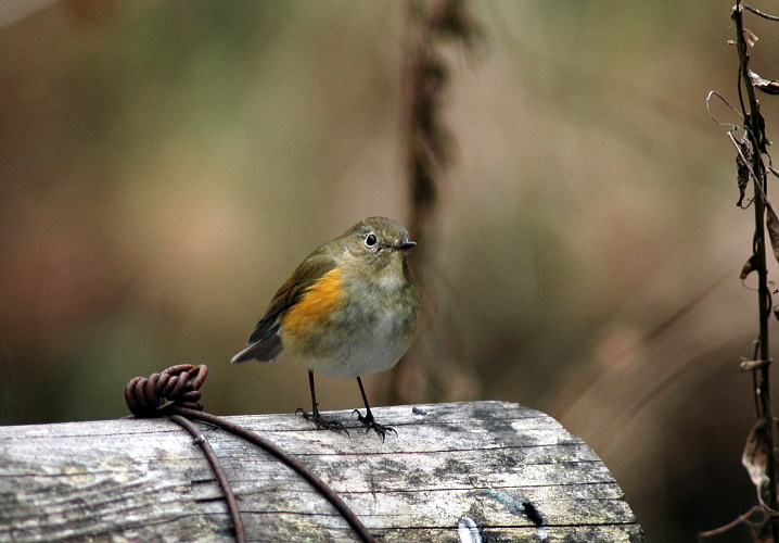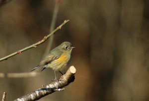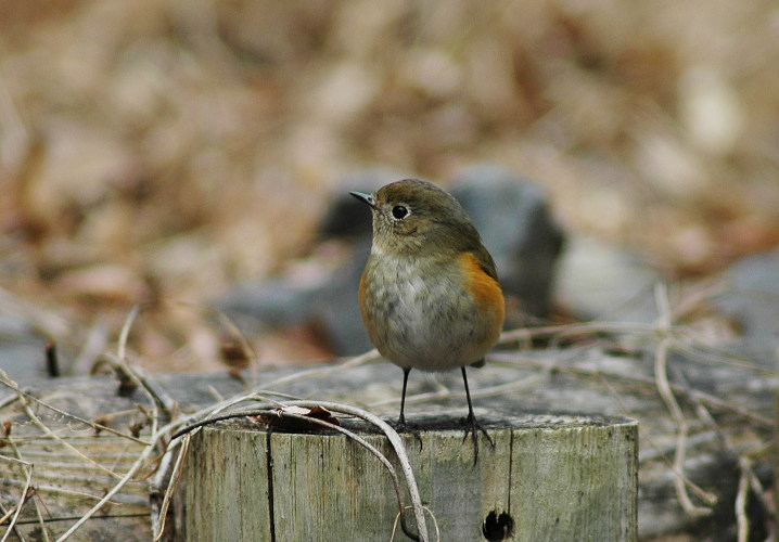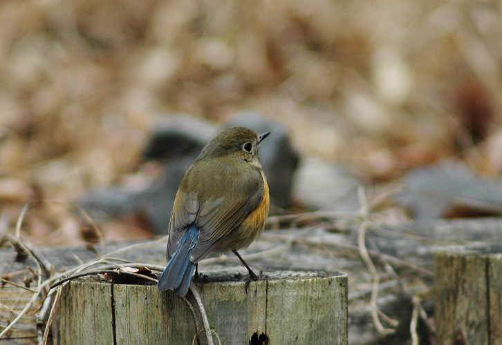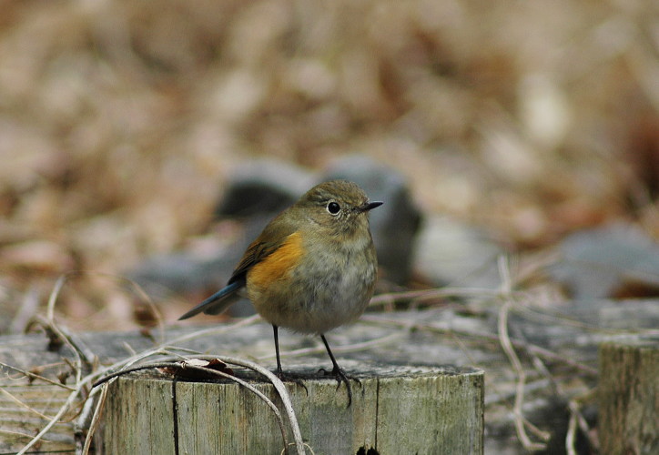 今回は雌が主役。ルリビタキの雄は綺麗な色で人気者ですが、雌も可愛いですよ。脇腹のレモン色や、尾の瑠璃色。なんと言っても目がくりっとしているのが可愛いです。 ここからは雄