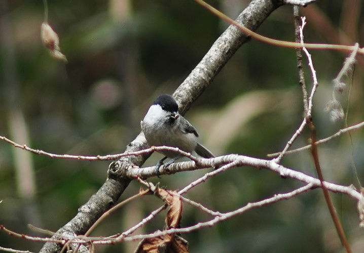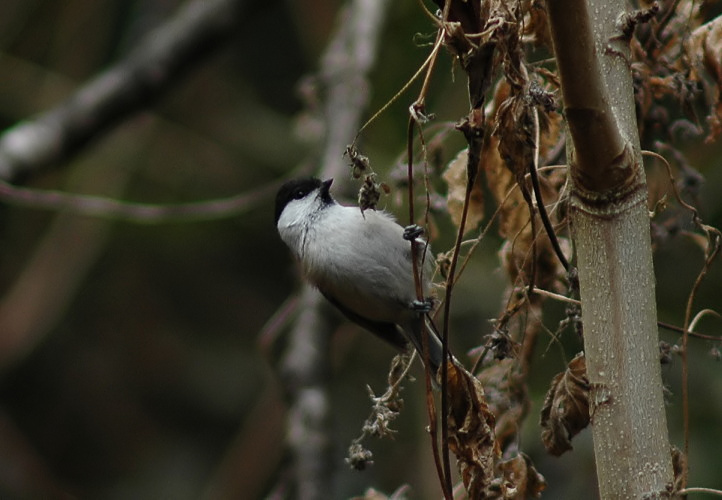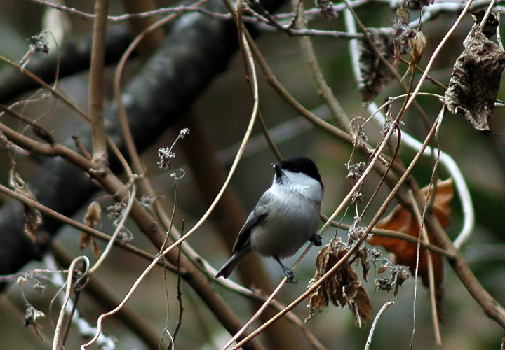 コガラは私の住んでいる平野部では殆んど見かけません。ただ冬に近くの山の麓に行くとまれにみる事があります。今回がそのまれなラッキーな時でした。しかもカメラを構えていましたので、これまたラッキー。 ただ、ちょっと遠かったので小さく、かなりトリミングしてあります。