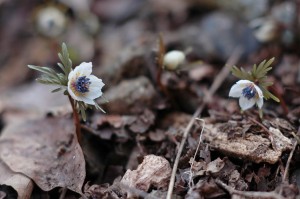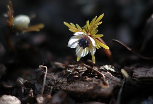 これは2月26日の写真です。 まだ早いだろうと、あまり期待せずに出かけました。確かに殆んど姿を見なかったのですが、少し花芽のついたものがあり、この二輪だけが花を開いていました。思わず微笑んでしまいました。 気に入った写真はないのですが、喜びの記念です。