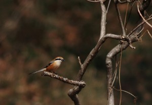 もう繁殖に入ったモズの雄と雌です。縄張り意識の強いモズですが、この2羽はかなり近くにいても追いかけあったりしていませんでした。おそらくつがいのモズだと思います。