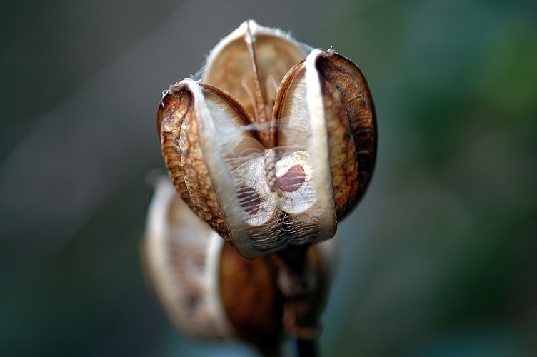 ウバユリの実は年が明けてから熟成し、殻を開いて種子を飛ばすようです。薄い種子はこの殻の中にいったい幾つくらい入っているのでしょう。多すぎて数える気にもなりません。