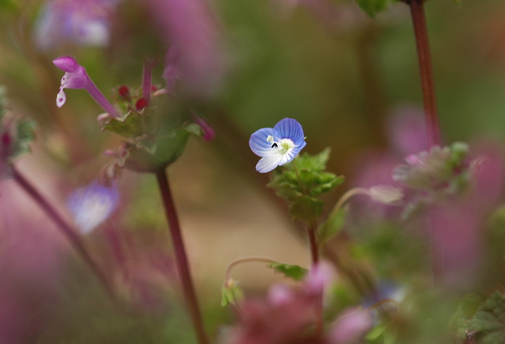 群生したオオイヌノフグリの青い星達も可愛いですが、アップにするとより可愛く感じます。冬から日だまりに咲いていますが、やはり春を感じさせる花です。