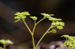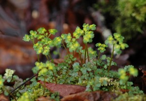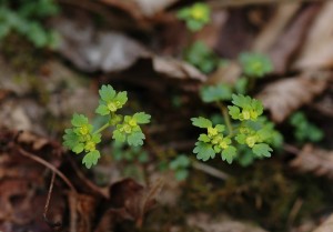 ツルネコノメソウは小さく薄い黄色の花なのであまり目でたない花のようですが、山の小さな沢沿いの岩にしっかりと根づいて群生していますので目につきます。しかも、まだ他に咲いている花は少ないので目につきやすいようです。