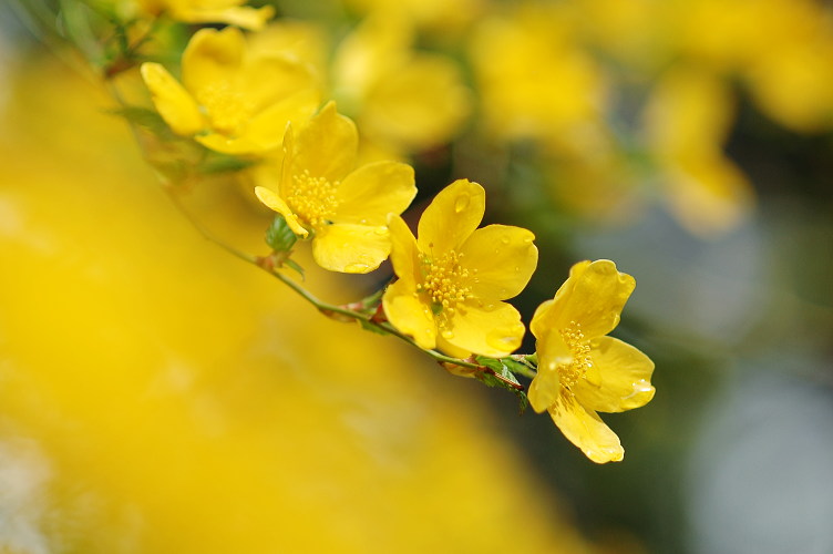 「七重八重・・・」では無く、野生のヤマブキは一重です。ですから時々実を沢山つける事もあります。太田道灌にちなむ歌のようではありませんね。ちょっと残念ですか? 私は八重咲きのヤマブキより、一重の野生のヤマブキの方が好きです。