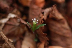 ヒゲネワチガイソウは今まではワチガイソウと表記していました。でも、別種のようなので今回からはヒゲネワチガイソウと表記します。 華奢ですね。小さいですね。でも、植物体全体からすると花は大きいのですよ。だから好きなのです。スプリングエフェメラルの特徴でもありますから。