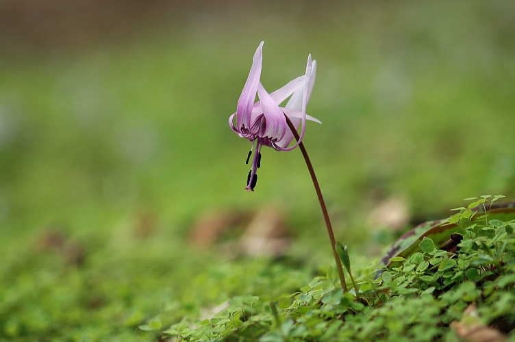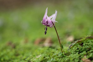 今年も何度も撮ったカタクリ。これが最後でしょうか。 若草色の中に綺麗なピンクが浮かび上がっていました。