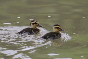 お馴染みのカルガモの子です。 3羽いましたが写真は2羽です。かわいいでちゅ。